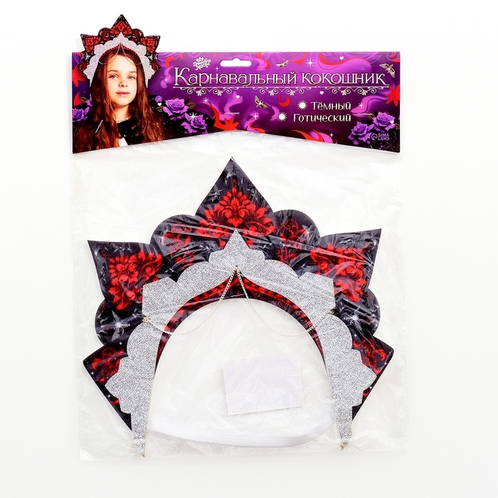 Кокошник «Готический» — изысканный головной убор, который перенесёт вас в таинственный мир готики. Кокошник выполнен из фетра высокого качества и украшен блестящими элементами, которые придают ему особый шарм. Мягкая резинка обеспечивает комфортную посадку на голове.