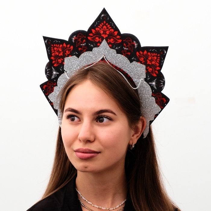 Этот кокошник станет прекрасным дополнением к карнавальному костюму или образу для тематической вечеринки. Он подойдет для тех, кто хочет создать загадочный и стильный образ.