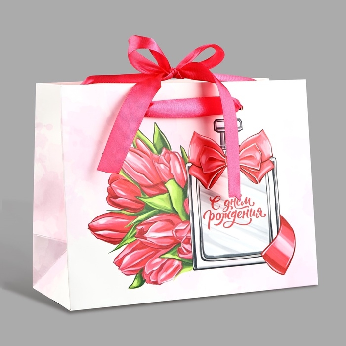 Пакет ламинированный с лентой «С Днём рождения», MS 23 × 10 × 18 см