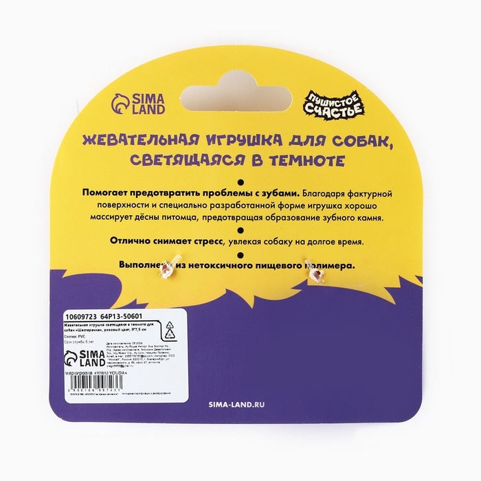 Удобство в уходе: Игрушка легко моется и не требует специальных условий хранения. Это делает её идеальным выбором для владельцев активных собак, которые могут оставить игрушку грязной после игр на улице.