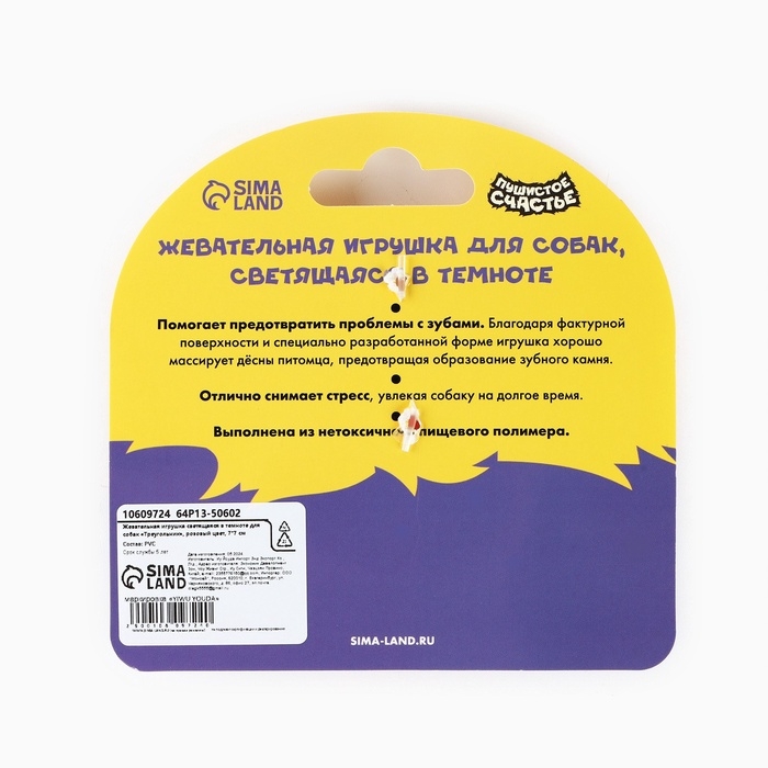 Удобство в уходе: Игрушка легко моется и не требует специальных условий хранения. Это делает её идеальным выбором для владельцев активных собак, которые могут оставить игрушку грязной после игр на улице.
