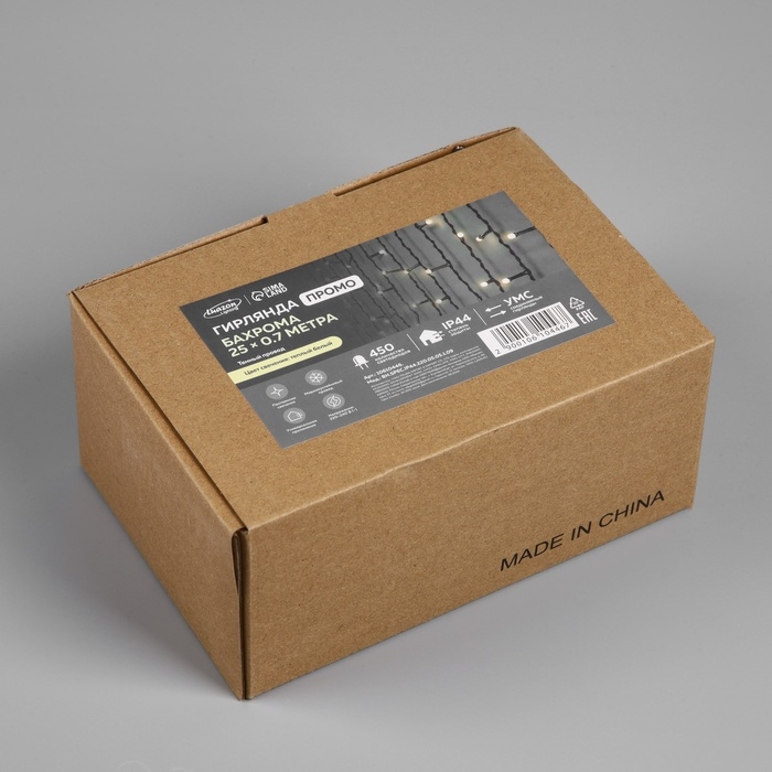 Гирлянда «Бахрома» 25 × 0.7 м, IP44, УМС, тёмная нить, 450 LED, свечение тёплое белое, 220 В