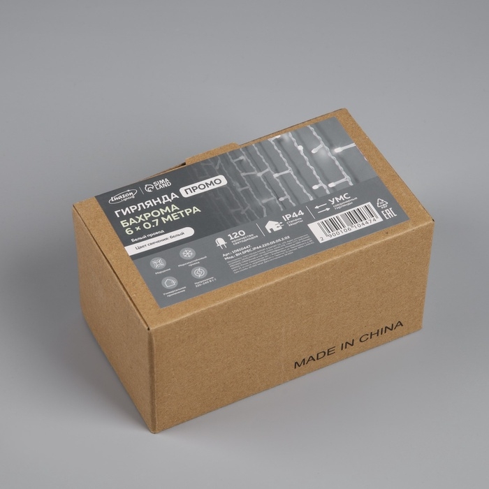 Гирлянда «Бахрома» 6 × 0.7 м, IP44, УМС, белая нить, 120 LED, свечение белое, мерцание, 220 В