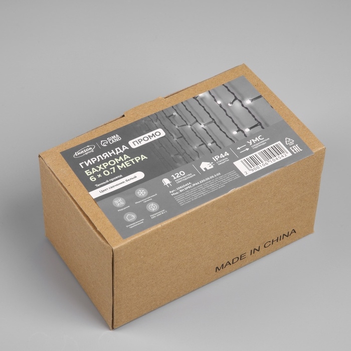 Гирлянда «Бахрома» 6 × 0.7 м, IP44, УМС, тёмная нить, 120 LED, свечение белое, мерцание, 220 В