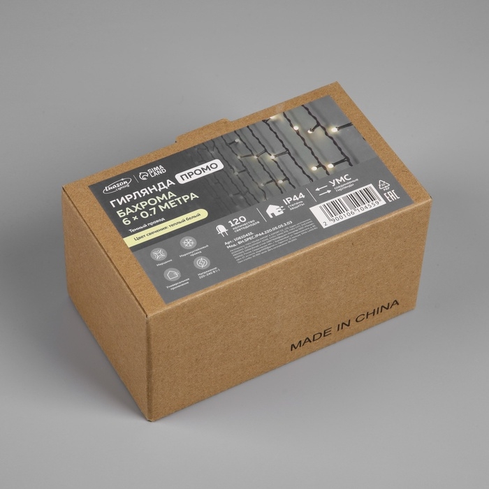 Гирлянда «Бахрома» 6 × 0.7 м, IP44, УМС, тёмная нить, 120 LED, свечение тёплое белое, мерцание, 220 В
