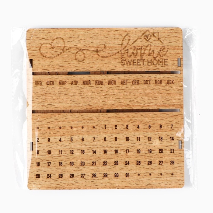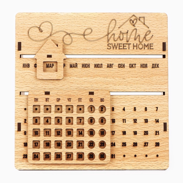 Вечный календарь «Sweet home» деревянный, 17,5 х 17 см