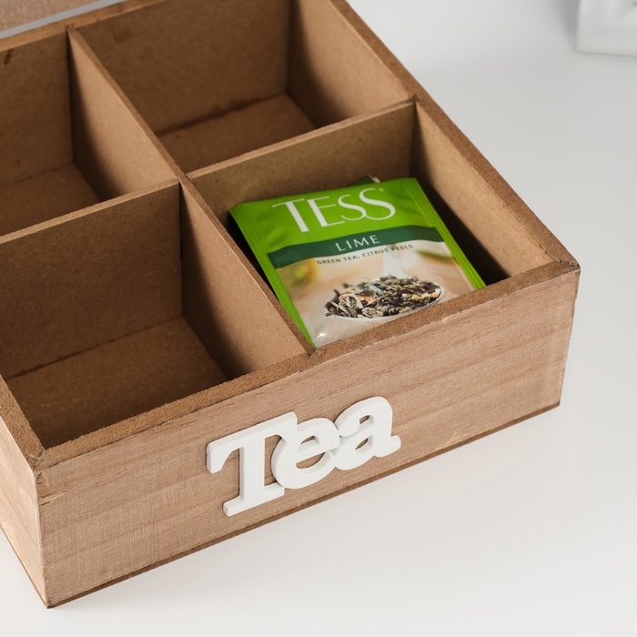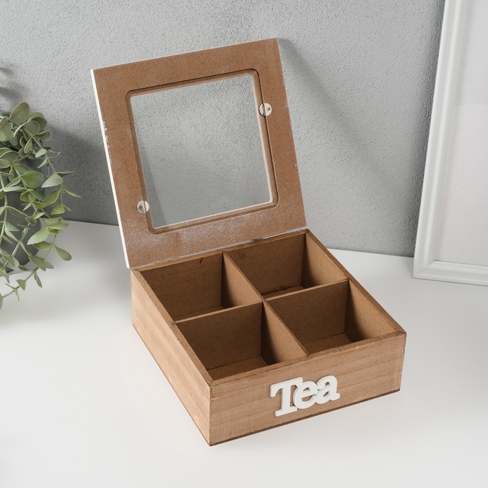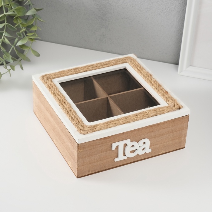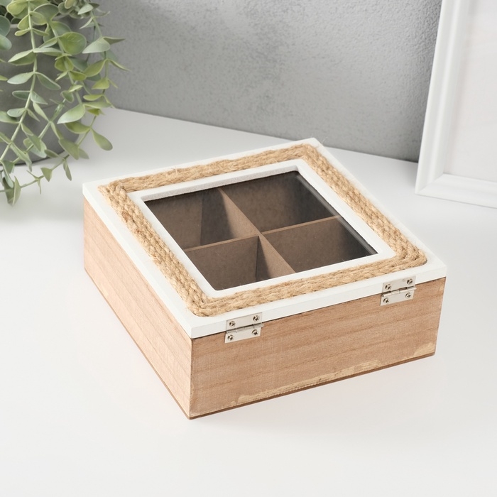 Шкатулка дерево с делениями "Чай с рамкой из джута" 23,5х23,5х7 см