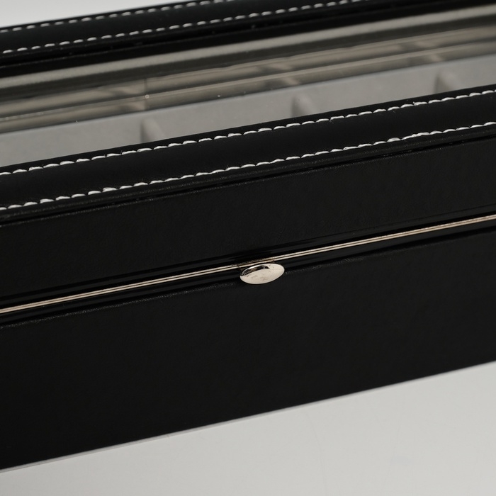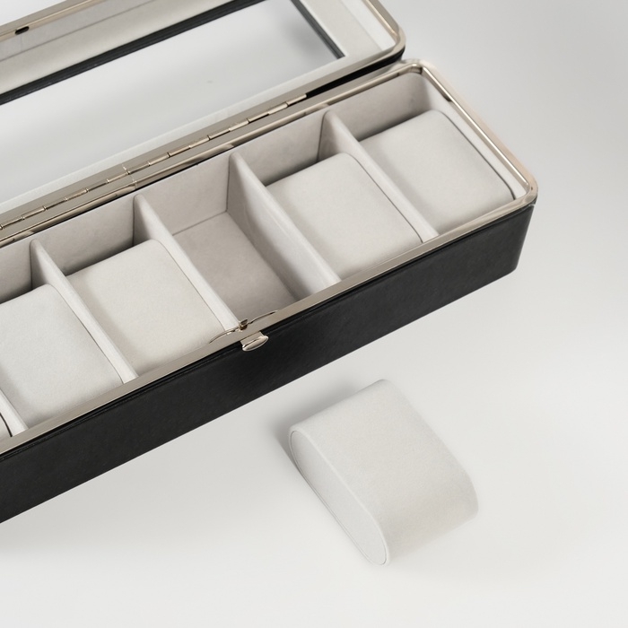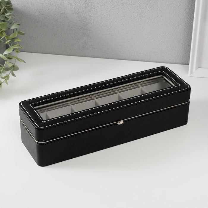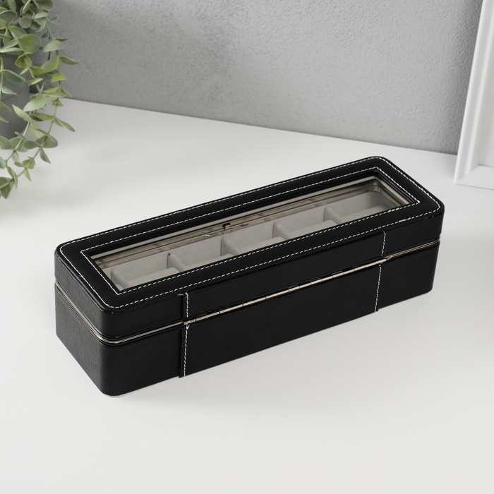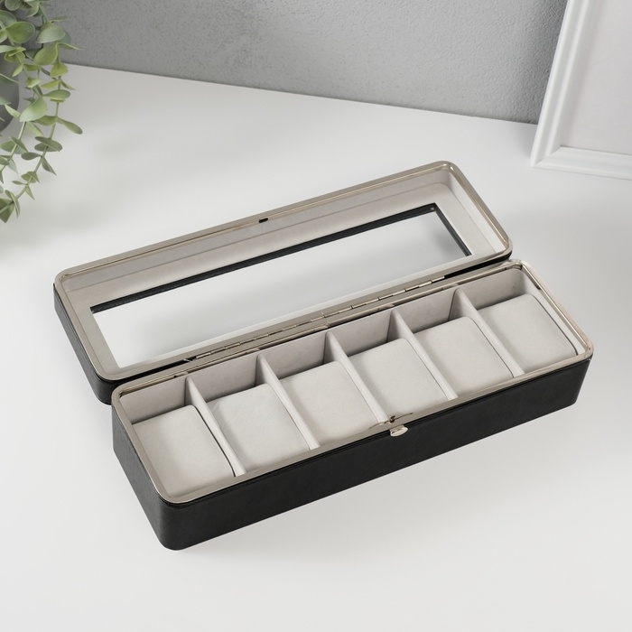 Шкатулка кожзам под часы 6 отделений "Чёрная" 9,5х30,5х8 см