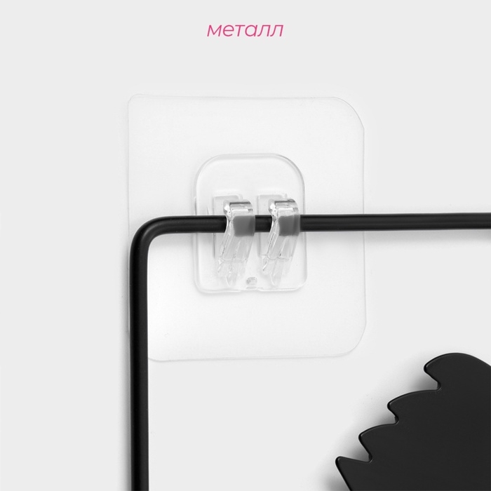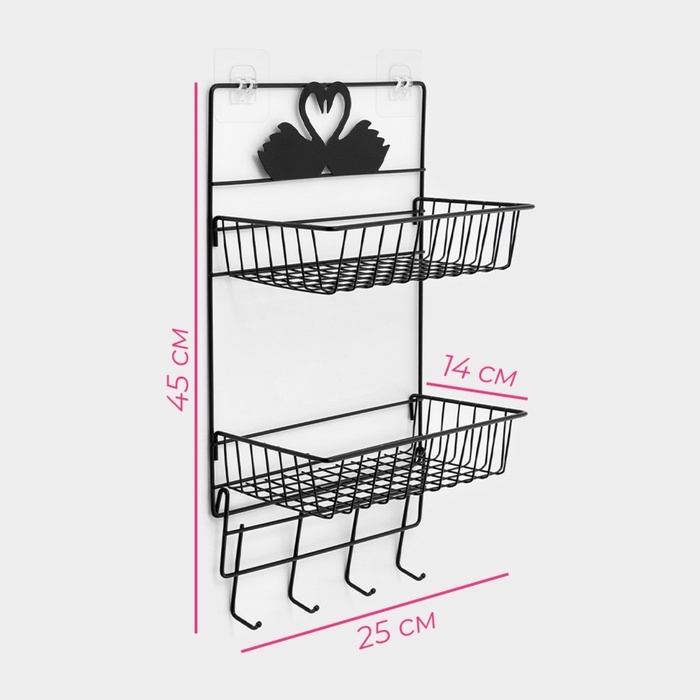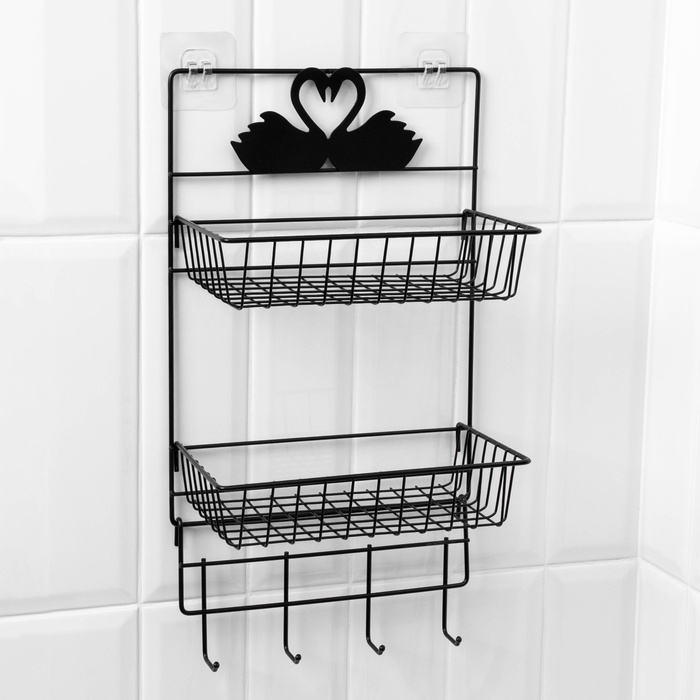 Полка для ванной Доляна, двухъярусная, 4 крючка, 47×25×14 см, чёрная
