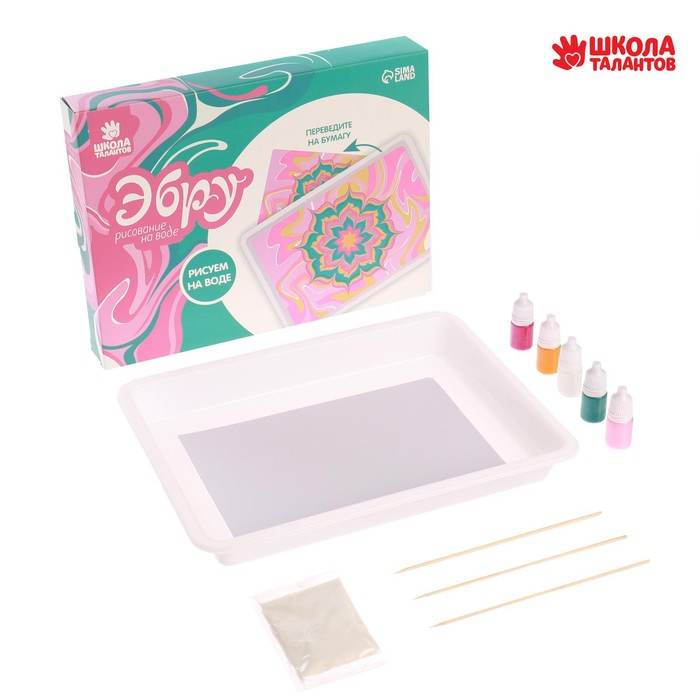 Набор для рисования эбру: краски 6 цв по 6 мл, 10 листов бумаги, загуститель 10 г, инструменты, поддон