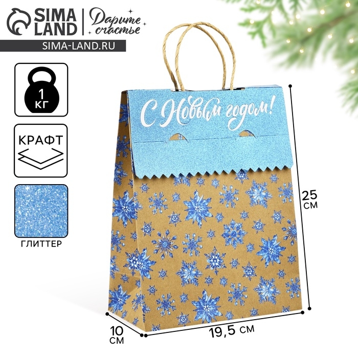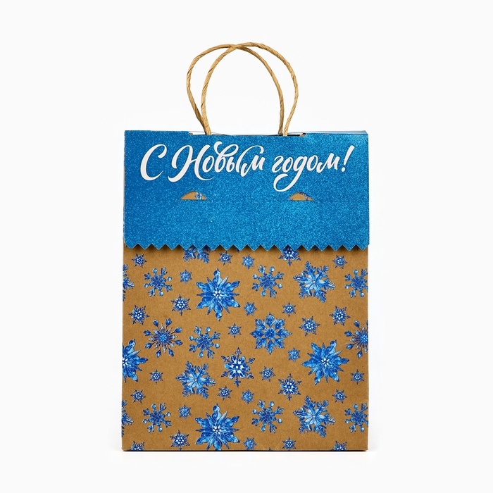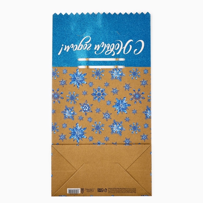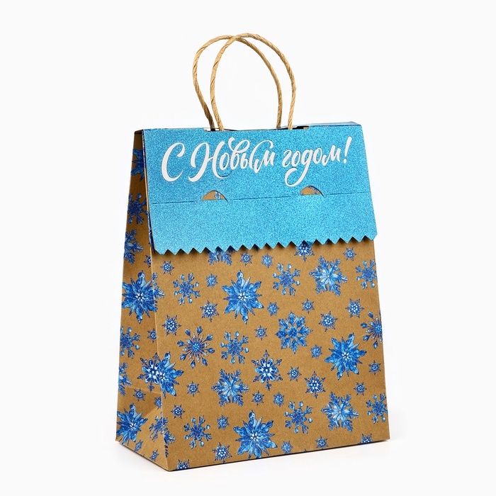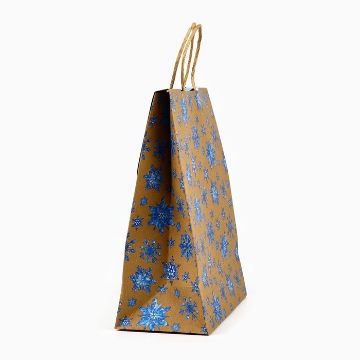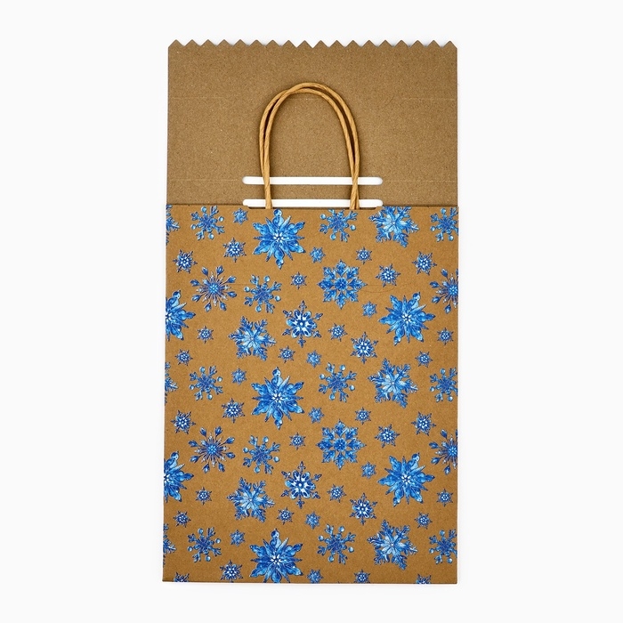 Пакет с клапаном «Снежинки», крафт, глиттер, 19.5 х 10 х 25 см