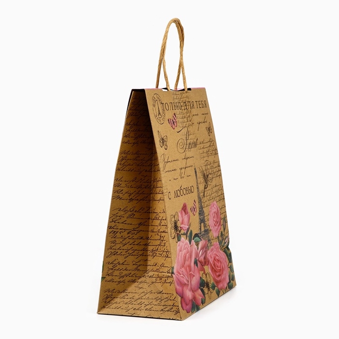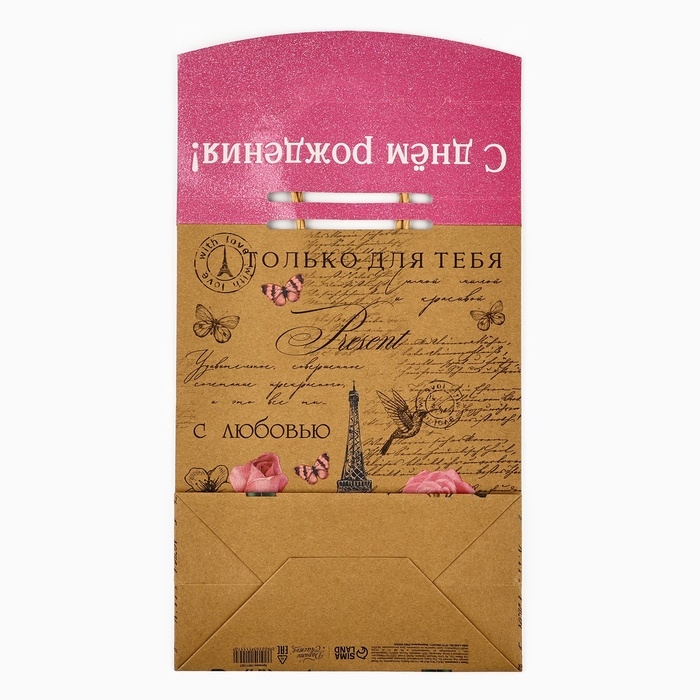 Пакет с клапаном «С Днём рождения», крафт, глиттер, 19,5 × 10 × 25.2 см
