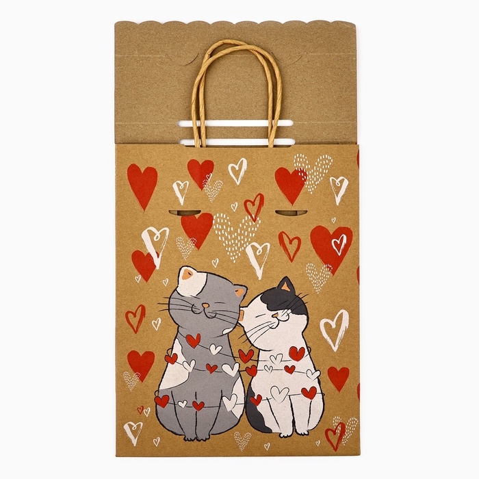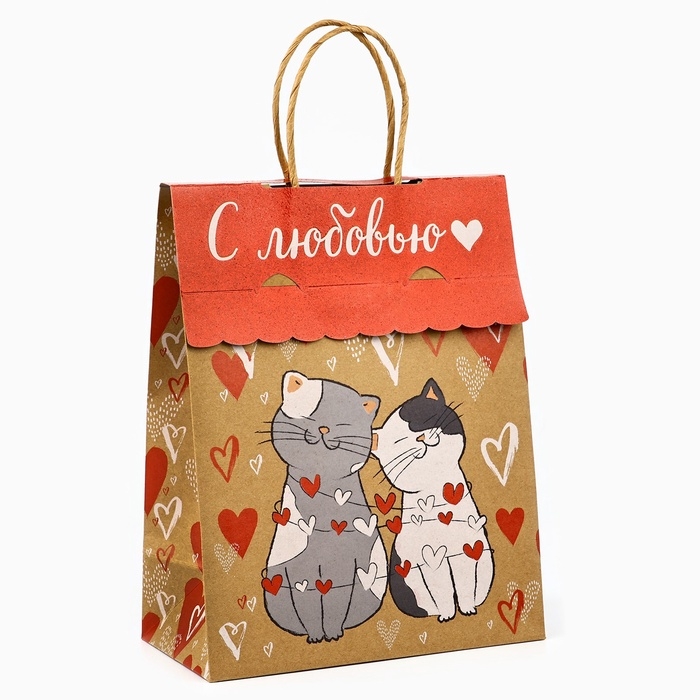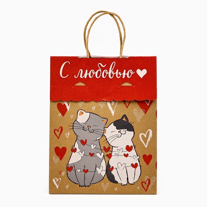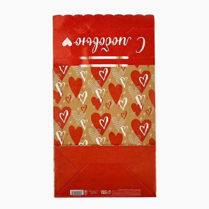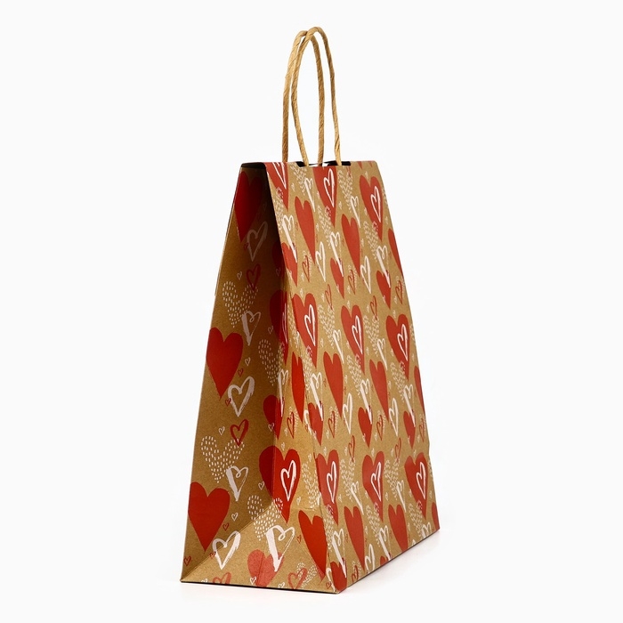 Пакет с клапаном «С любовью», сердца, крафт, глиттер, 19,5 × 10 × 25.2 см