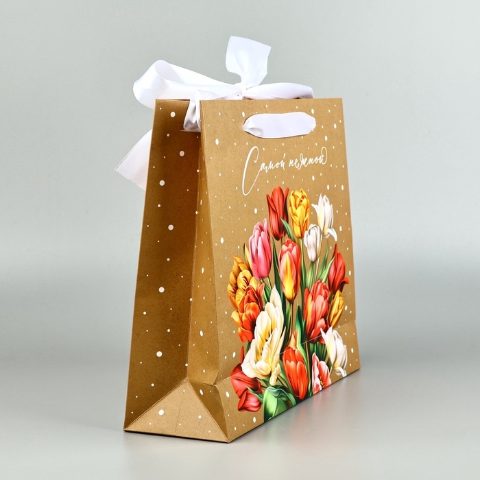 Пакет ламинированный с лентой «Самой нежной», M 30 × 9 × 26 см