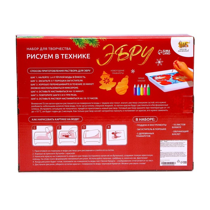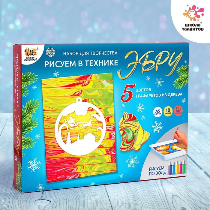 Набор для творчества «Рисуем в технике Эбру», А5 Новый год +5 ёлочных украшений