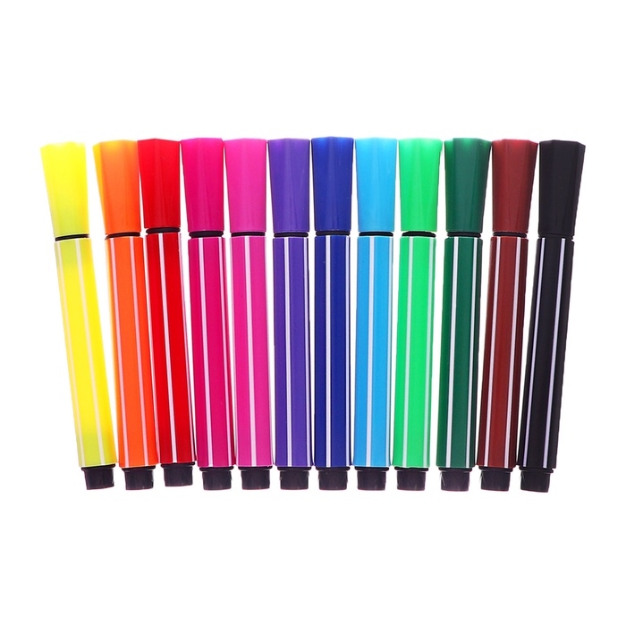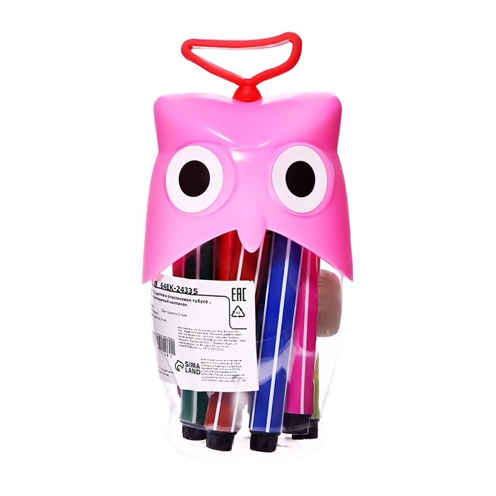 Фломастеры 12 цветов в пластиковом тубусе Сова розовая, ТОЛСТЫЕ вентилируемый колпачок