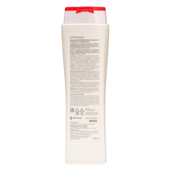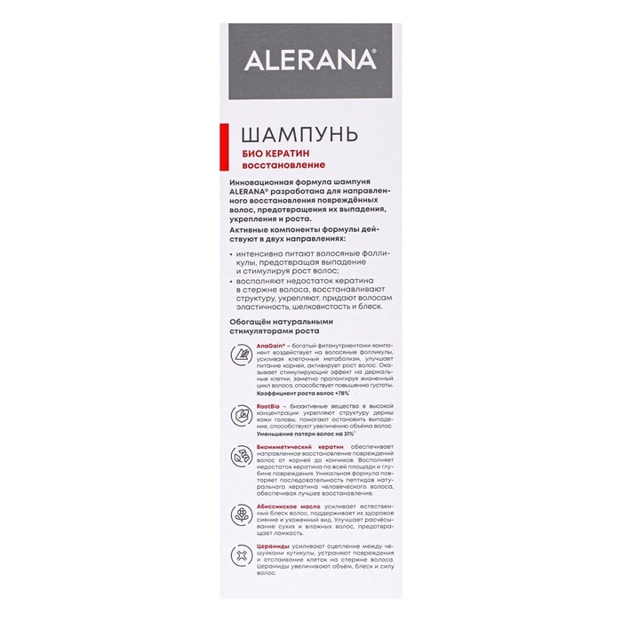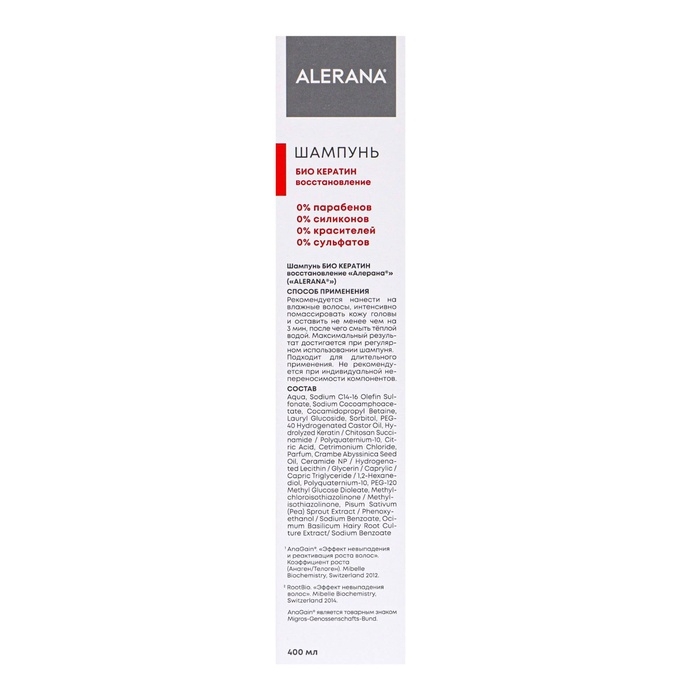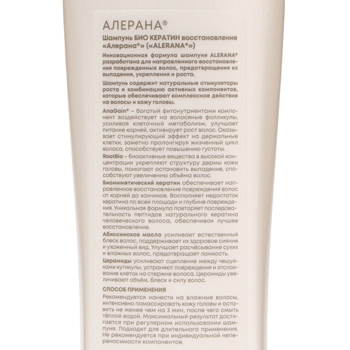 Шампунь для волос Алерана био кератин, восстанавливающий, 400 мл