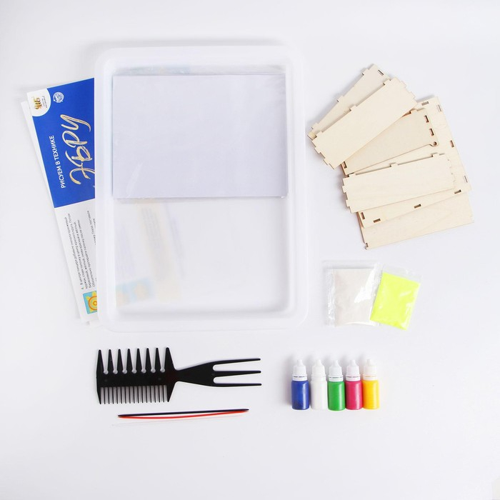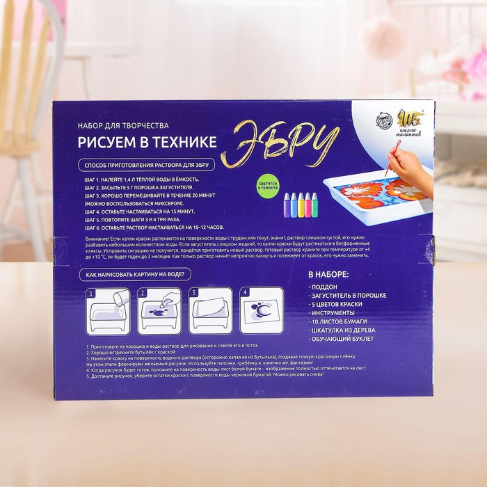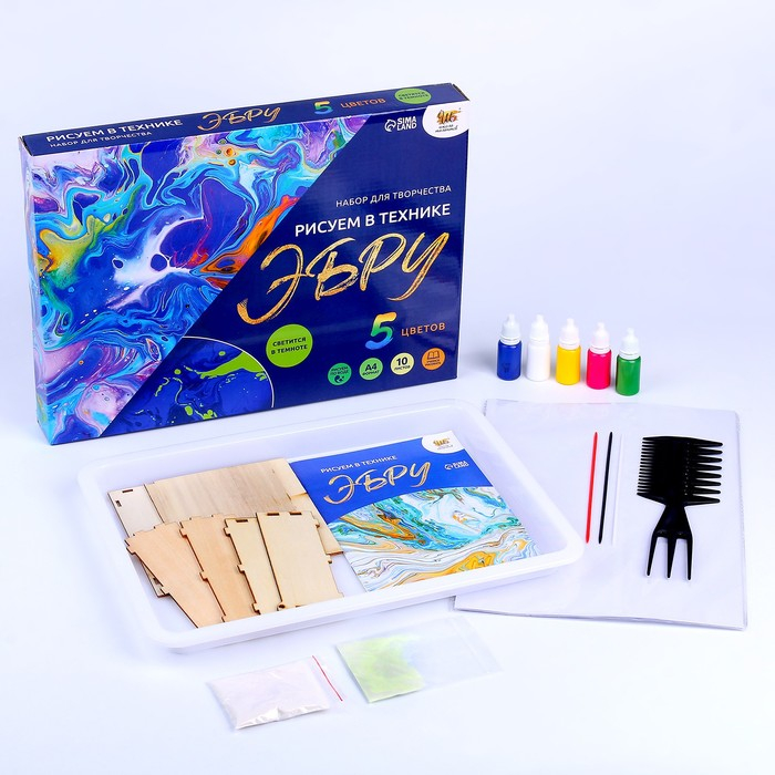 Набор для рисования эбру: краски 6 цв по 6 мл, 10 листов бумаги, загуститель 10 г, инструменты, поддон