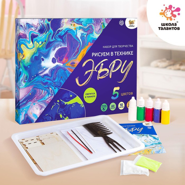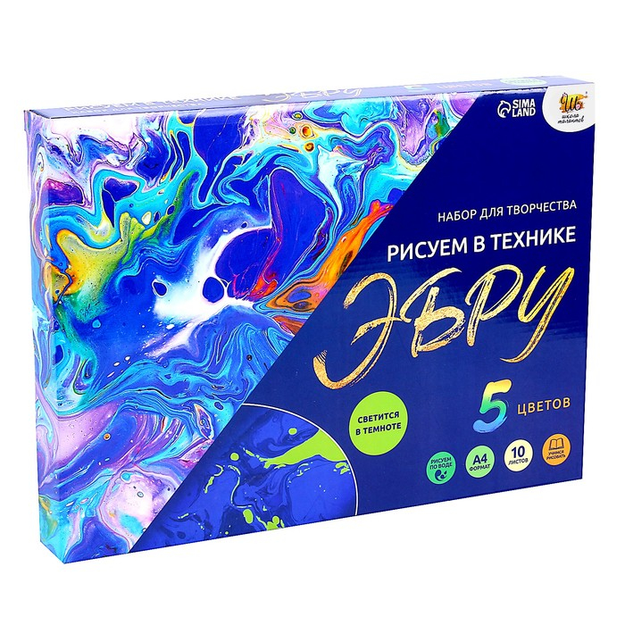 Набор для творчества «Рисуем в технике Эбру», формат А4 + флуоресцентные краски
