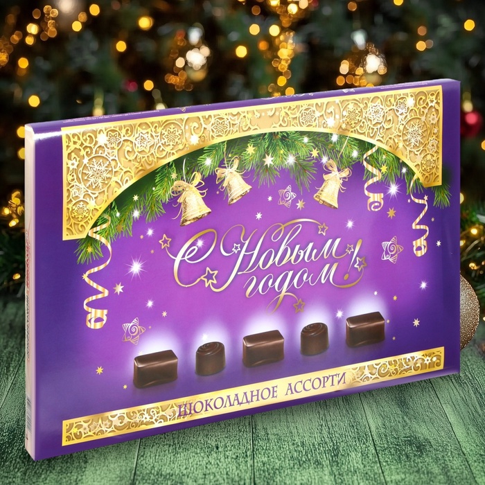 Шоколадное ассорти «С новым годом» , пенал фиолетовый 200 г