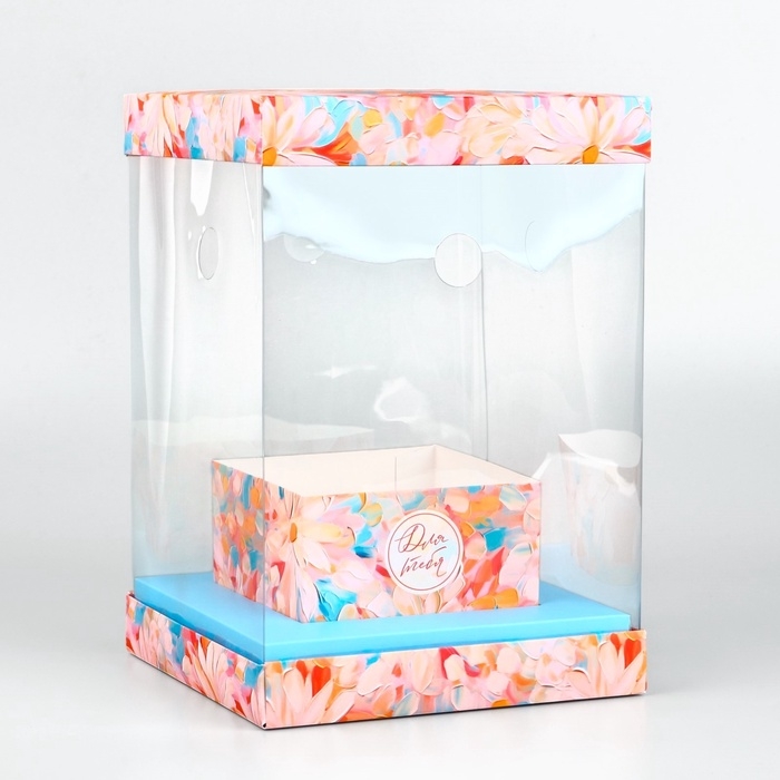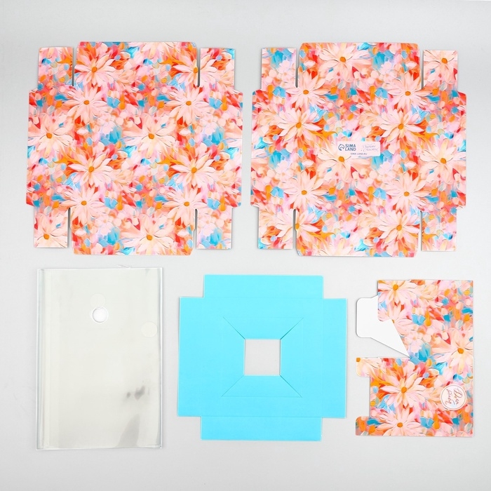 Коробка для цветов с вазой и PVC окнами складная «Весенние цветы», 16 х 23 х 16 см