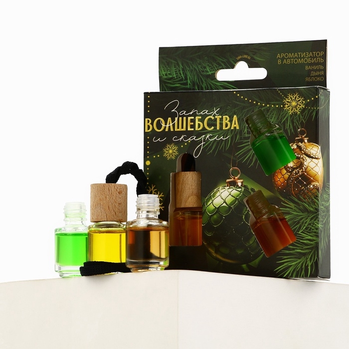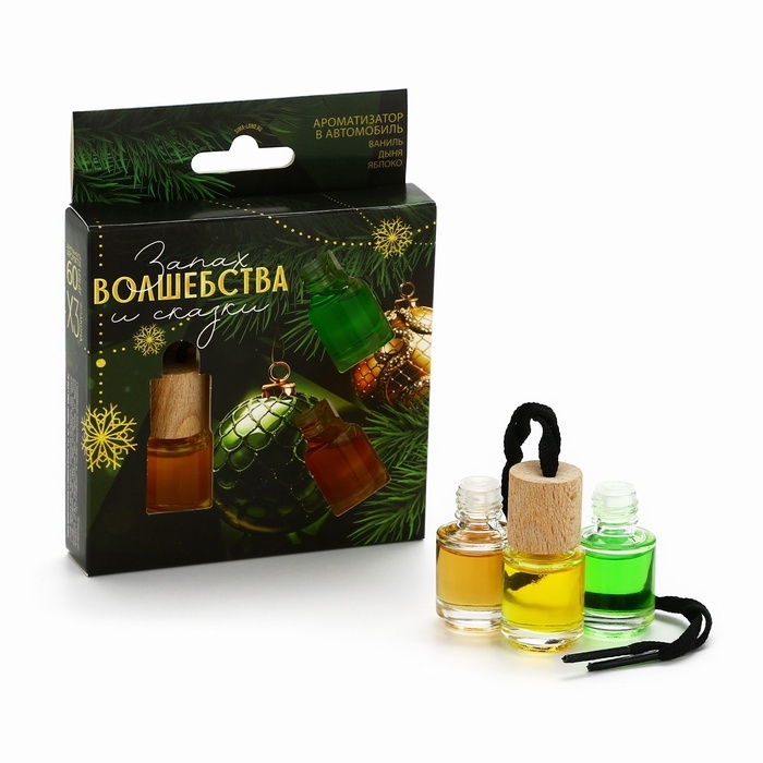 Ароматизаторы для машины новогодние «Запах волшебства и сказки», ваниль, дыня, яблоко, 3 шт