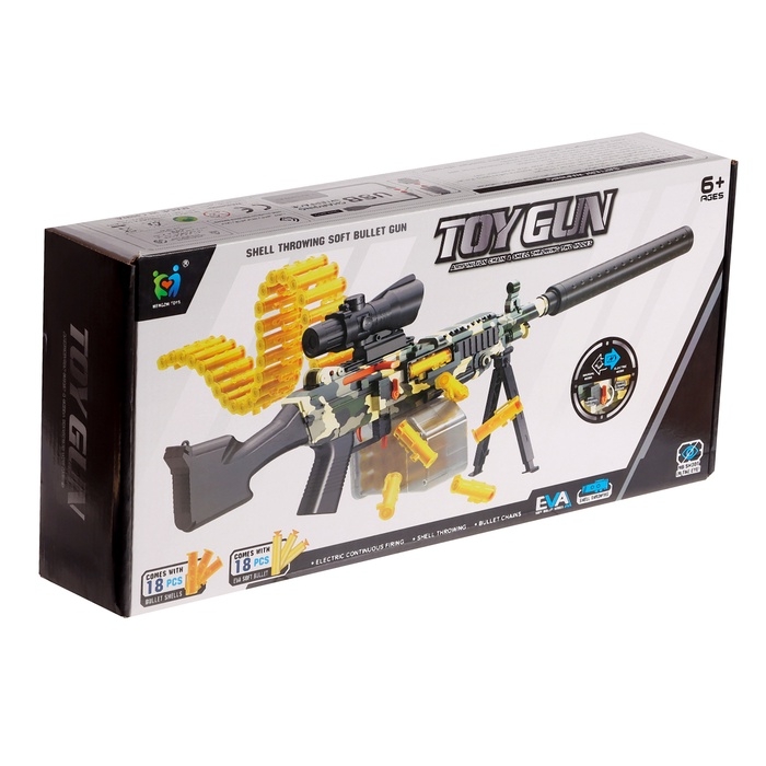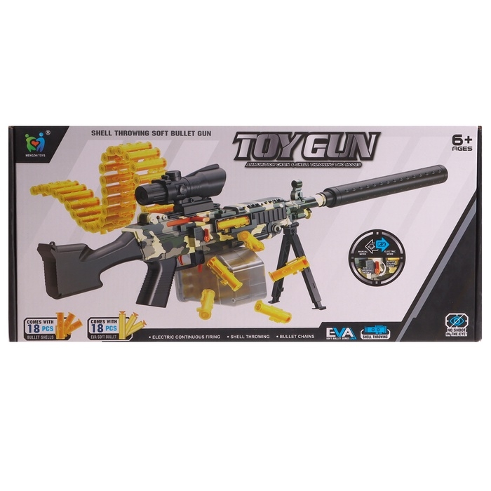 Особая функция пулемёта — эффект разлетающихся гильз, который делает игру ещё более увлекательной и зрелищной. При каждом выстреле пулемёт выбрасывает гильзы, имитируя реальную стрельбу, эта функция добавляет реалистичности и зрелищности игровому процессу. Дети погрузятся в воображаемые сценарии, пробуя себя в роли героя, защитника или стратега.