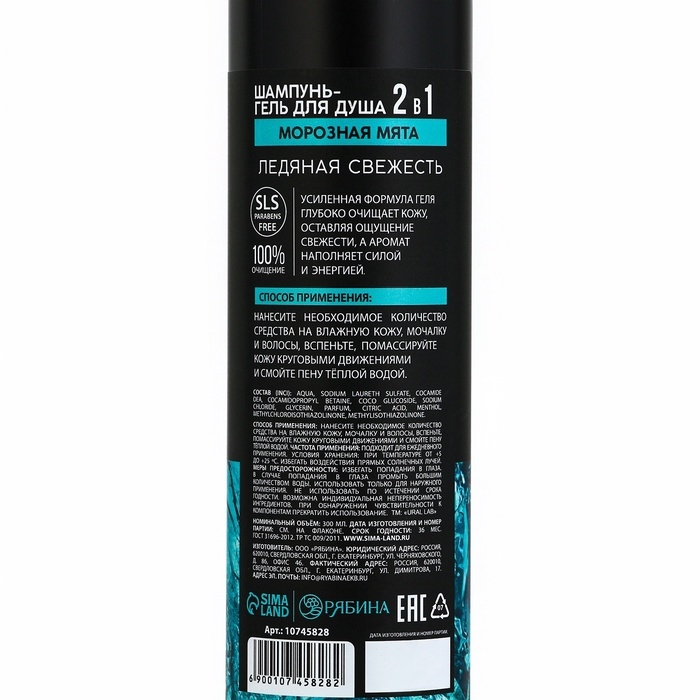 Шампунь мужской 2в1, 300 мл, аромат мяты, URAL LAB