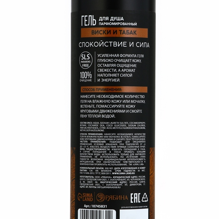 Гель для душа мужской, 300 мл, аромат виски и табака, URAL LAB