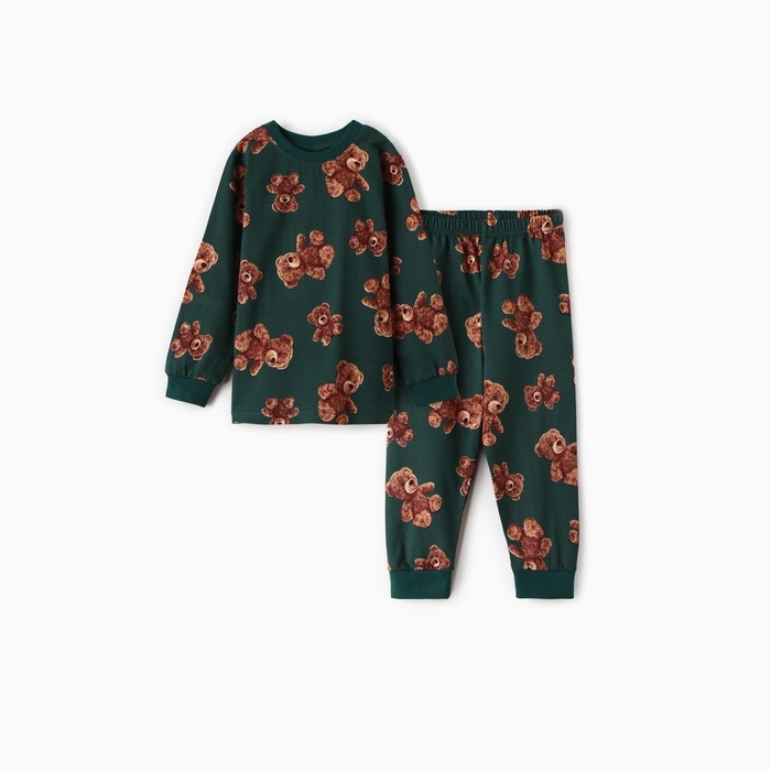 Пижама детская (фуфайка/брюки), цвет зелёный, рост 128