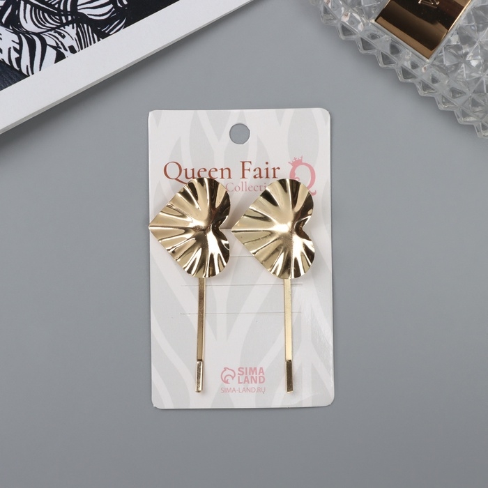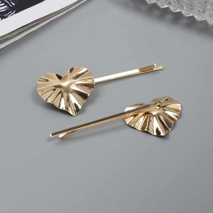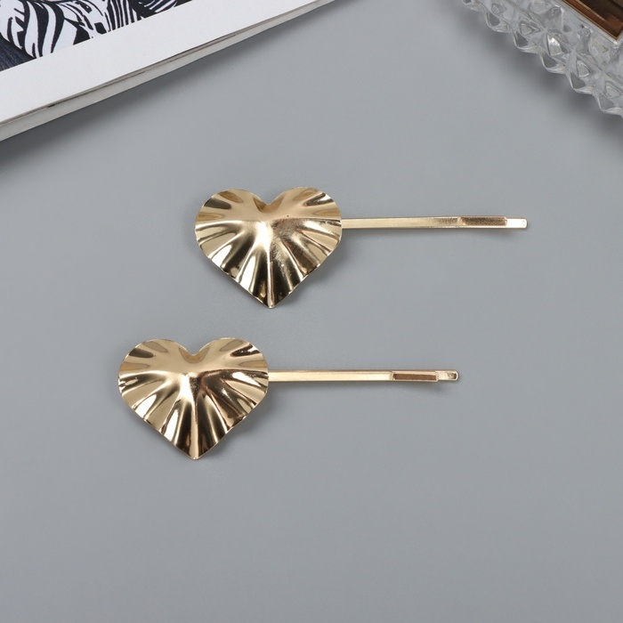 Невидимка для волос "Бенте" (набор 2 шт) сердце, 6 см, золото