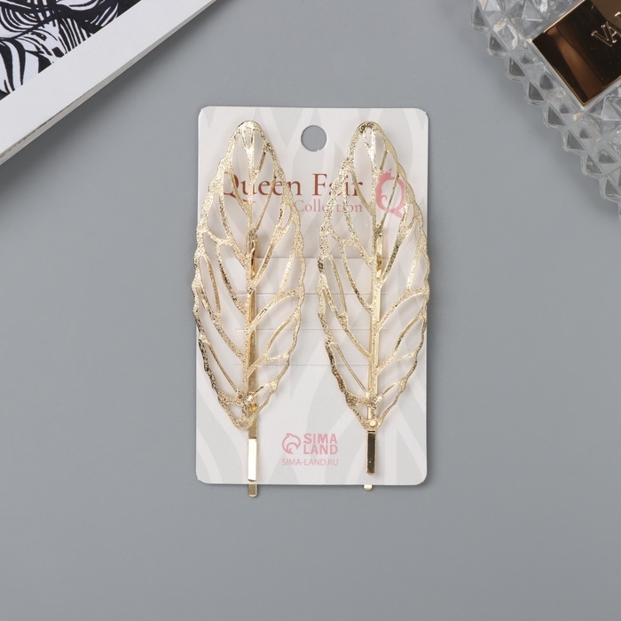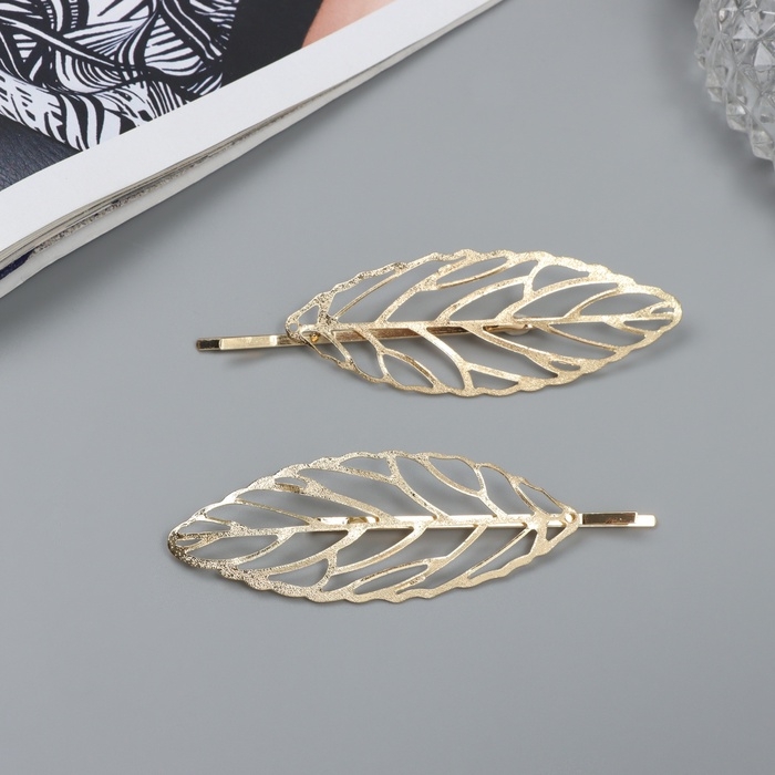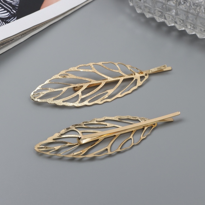 Невидимка для волос "Флоренс" (набор 2 шт) листок, 7,5 см, золото