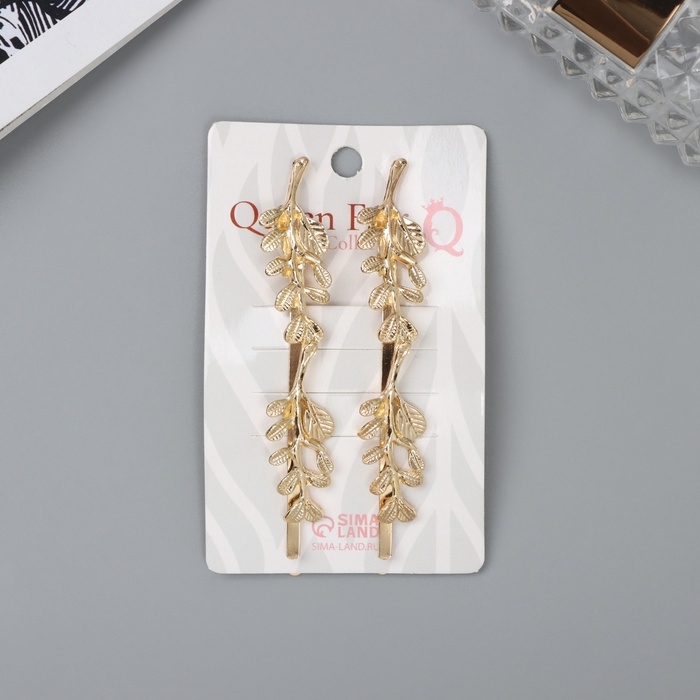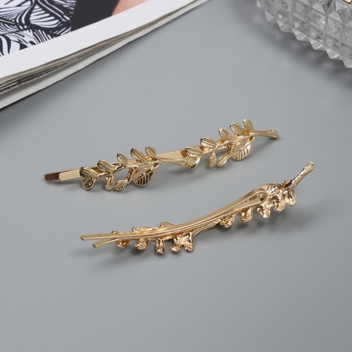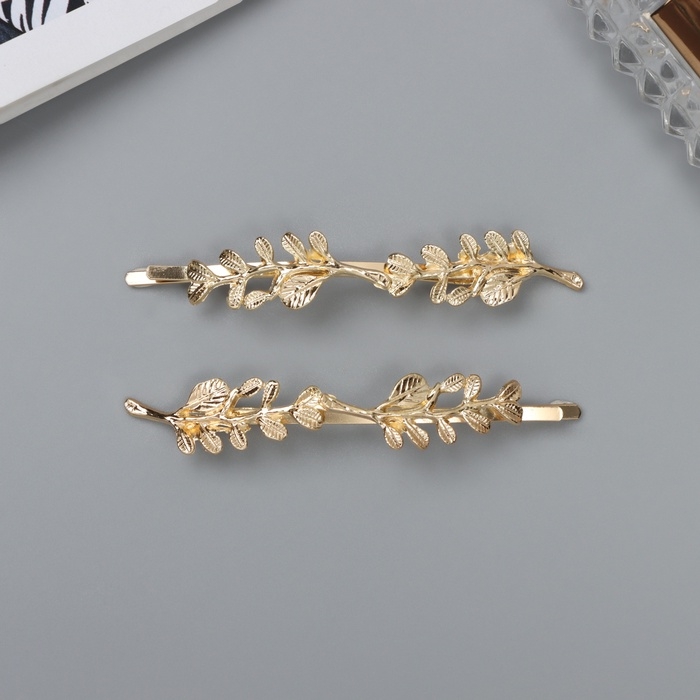 Невидимка для волос "Одри" (набор 2 шт) листочки, 8 см, золото