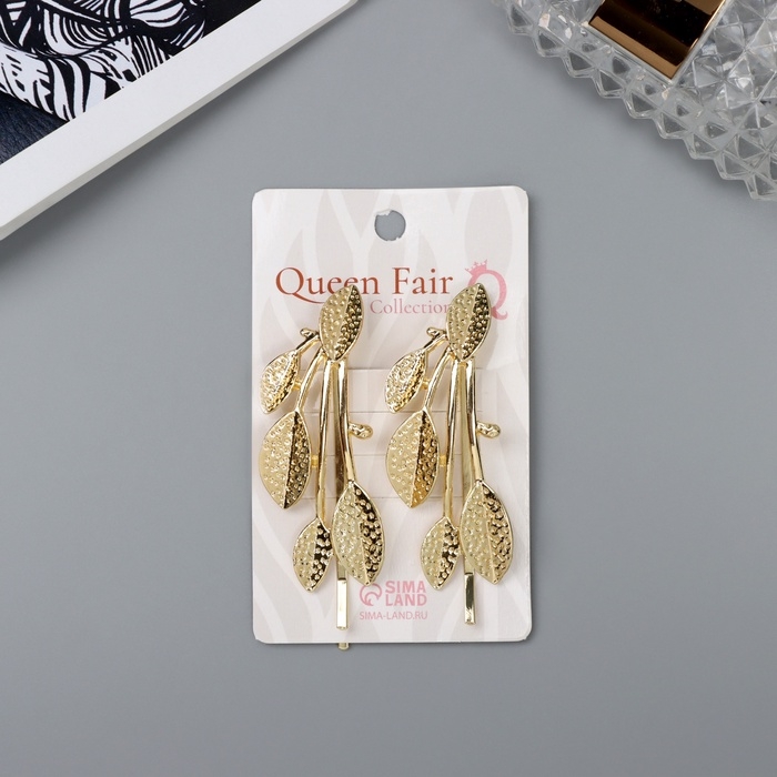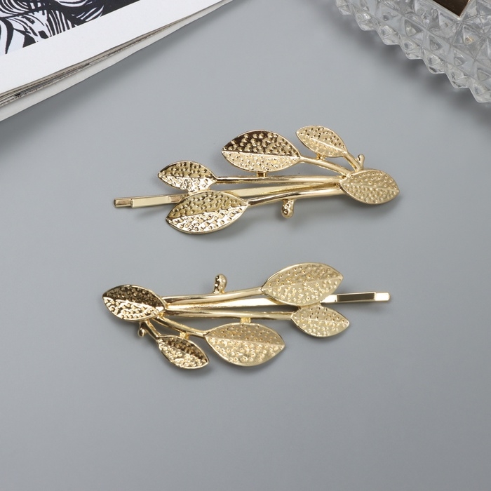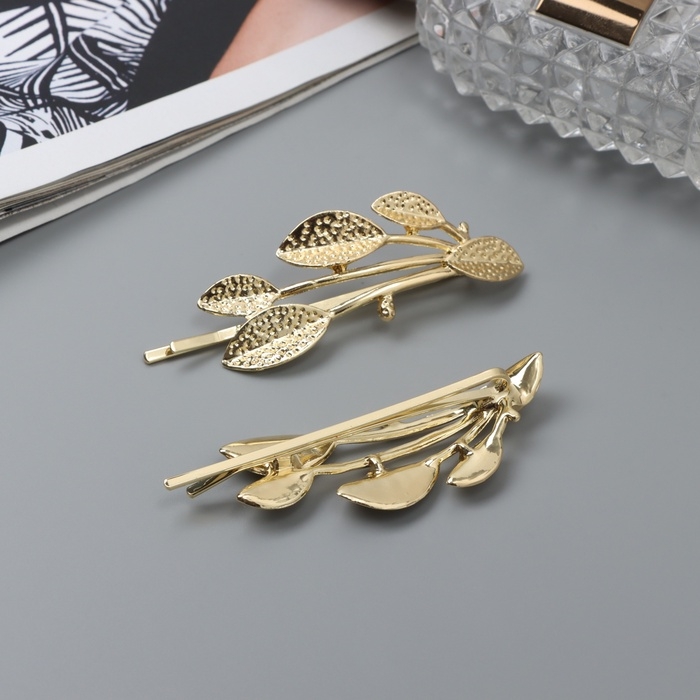 Невидимка для волос "Одри" (набор 2 шт) листья, 6,5 см, золото