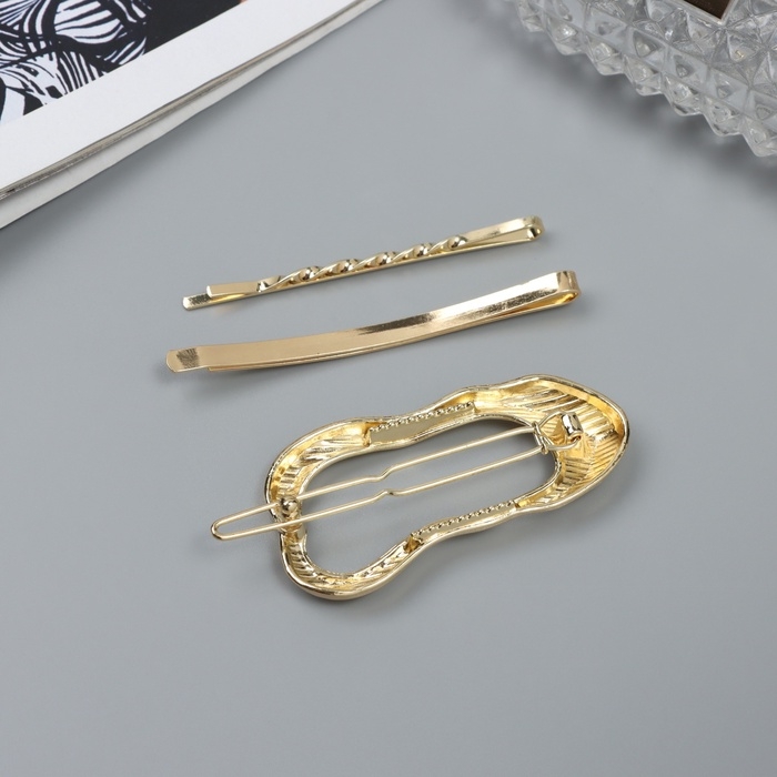 Невидимка для волос "Милагрос" (набор 3 шт) овал волна, 6 см, золото