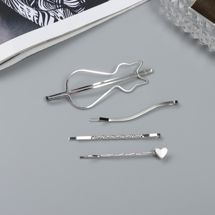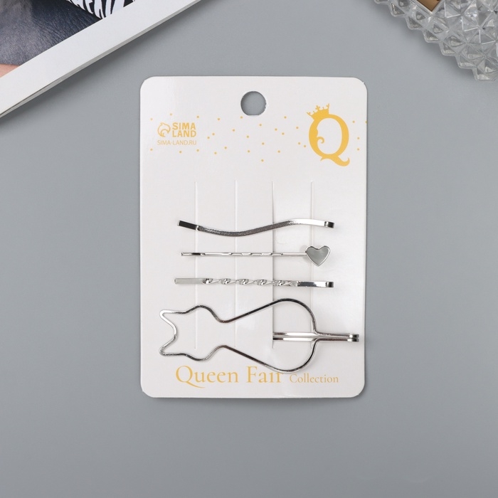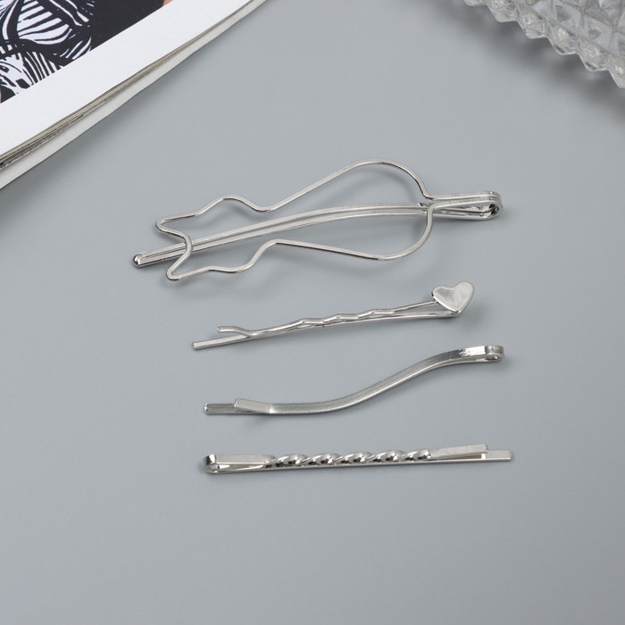 Невидимка для волос "Тириль" (набор 4 шт) котик, 5,5 и 6,5 см, серебро