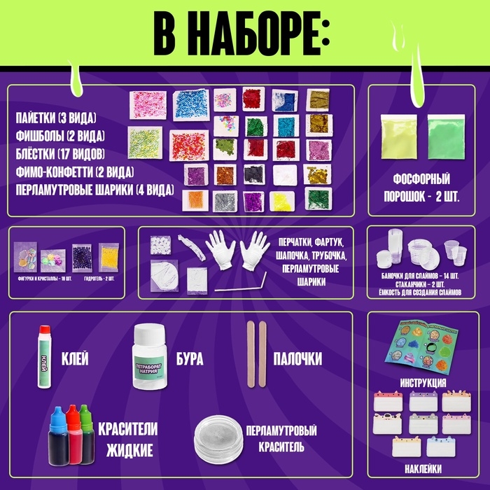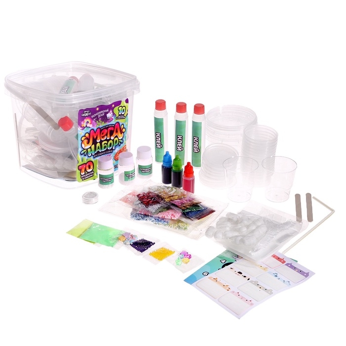 Набор для опытов «Меганабор для создания слаймов», своими руками, 10 фигурок и кристаллов