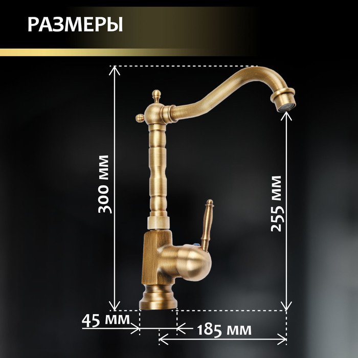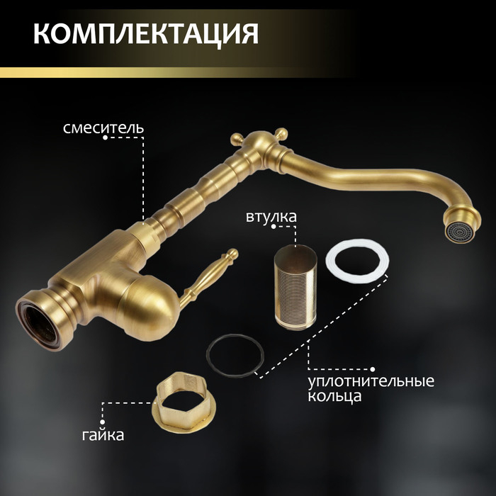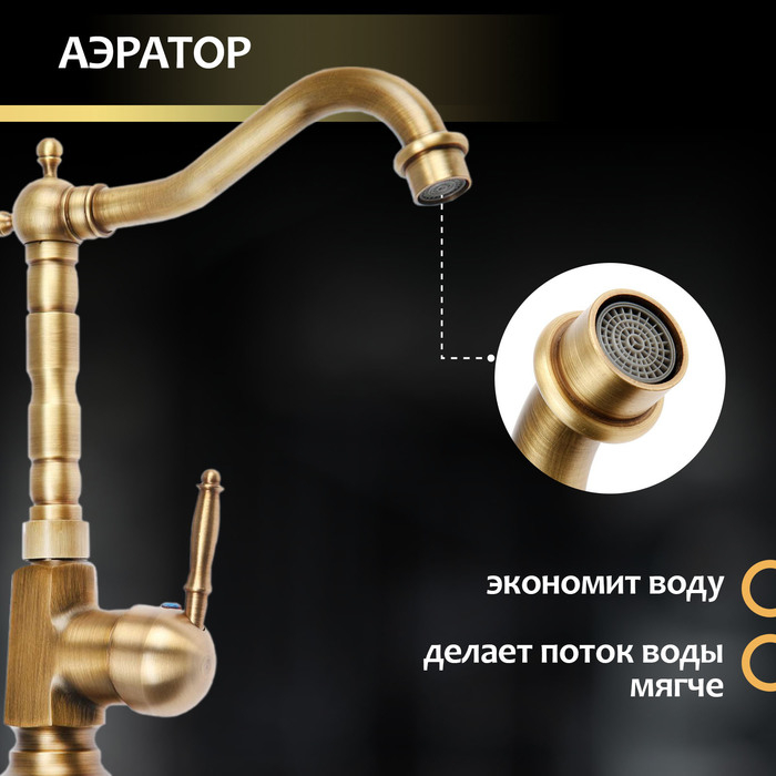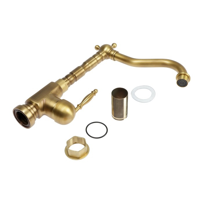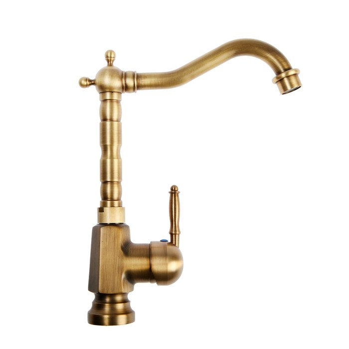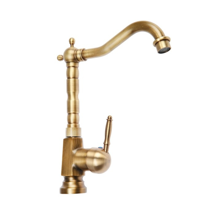 Смеситель для кухни и раковины ZEIN Ретро, высокий излив, без подводки, латунь, цвет бронза