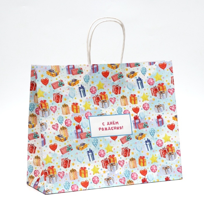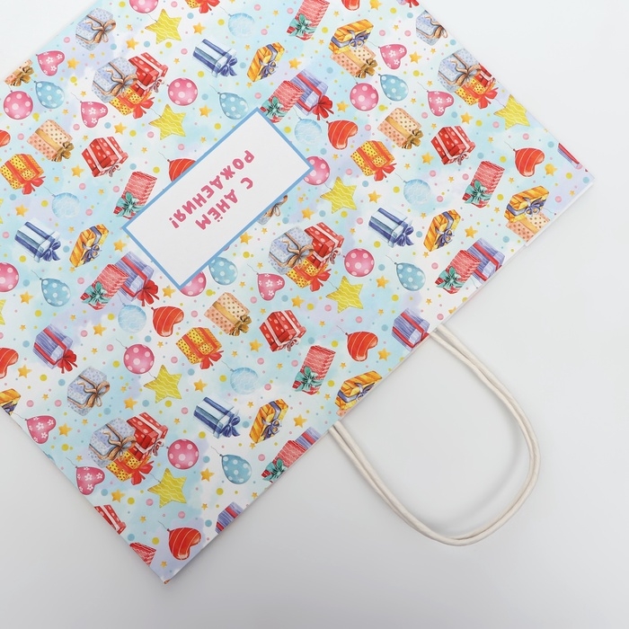 Пакет подарочный крафтовый "С Днём Рождения" 31,5 х 25 х 11,5 см, 120 г/м²