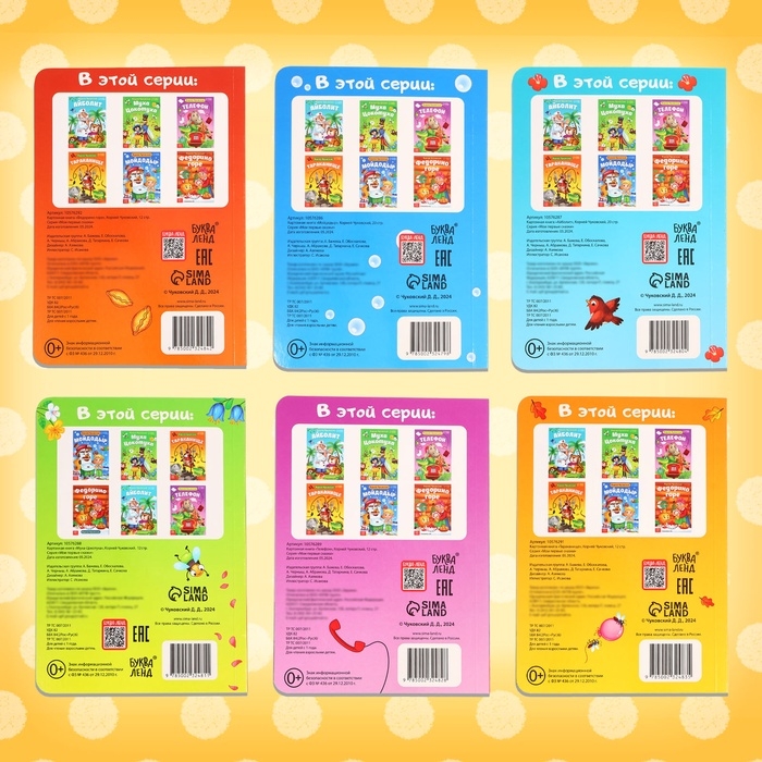 Набор книг детских картонных «Сказки в стихах», Корней Чуковский, 6 шт.