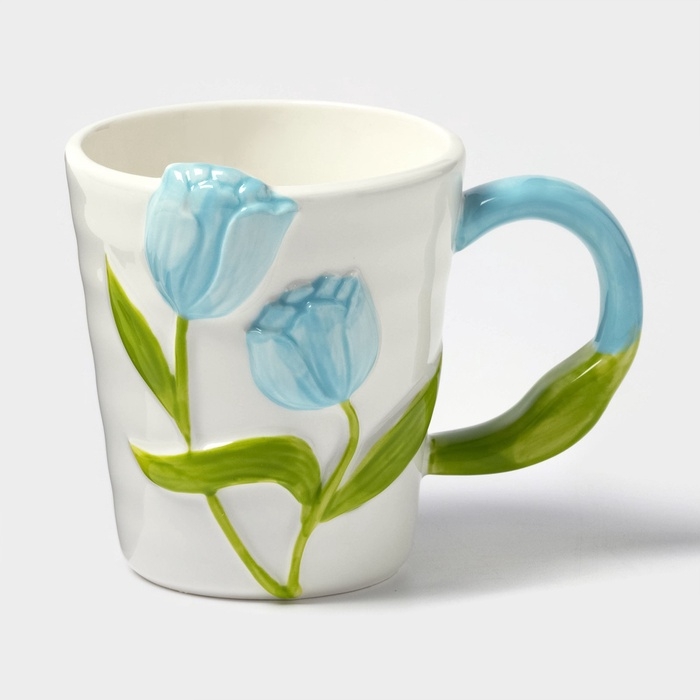 Кружка «Тюльпан», 350 мл, голубой цветок, керамика, белая