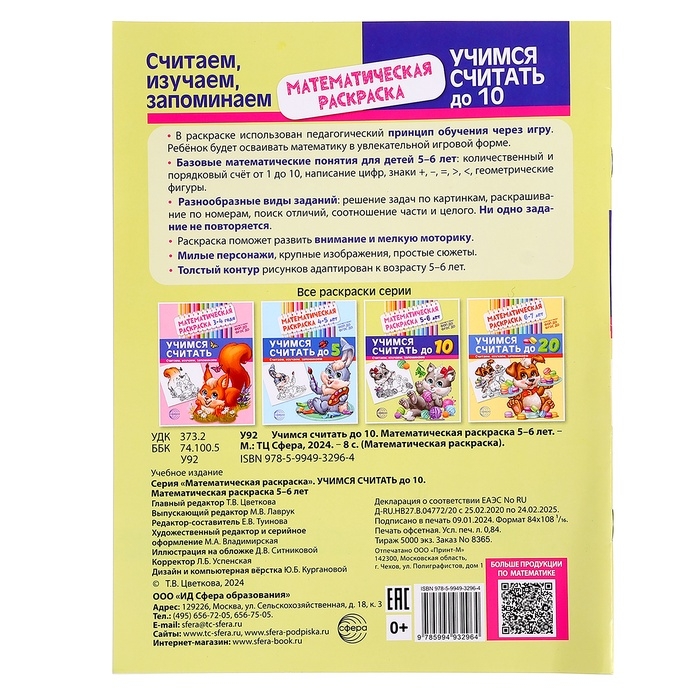 Раскраска математическая «Учимся считать до 10», 5-6 лет, чёрно - белая, ФОП ДО и ФГОС ДО
