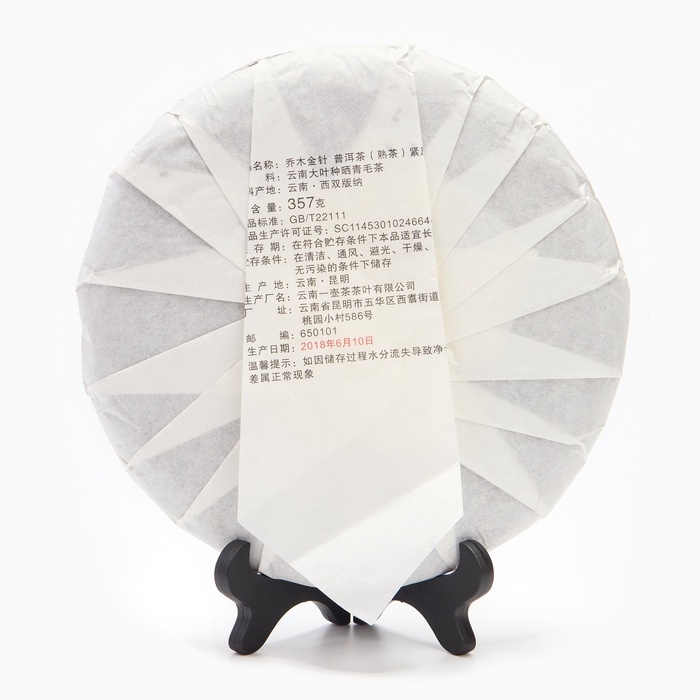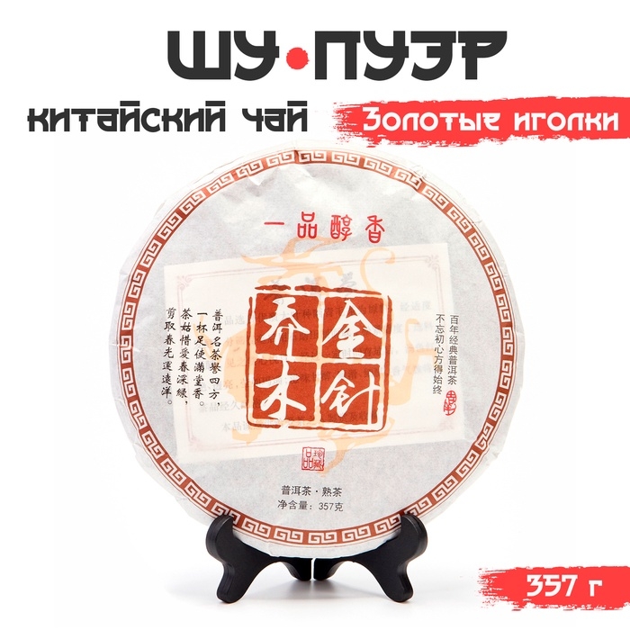 Китайский выдержанный чай "Шу Пуэр. Золотые иголки", 357 г, 2018 год, Юньнань, блин