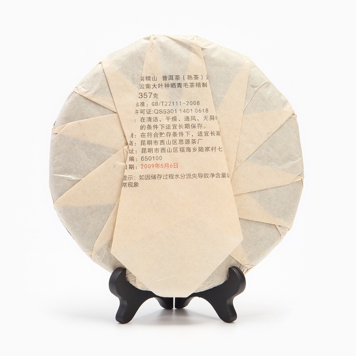 Китайский выдержанный чай "Шу Пуэр. Горный", 357 г, 2009 год, Юньнань, блин