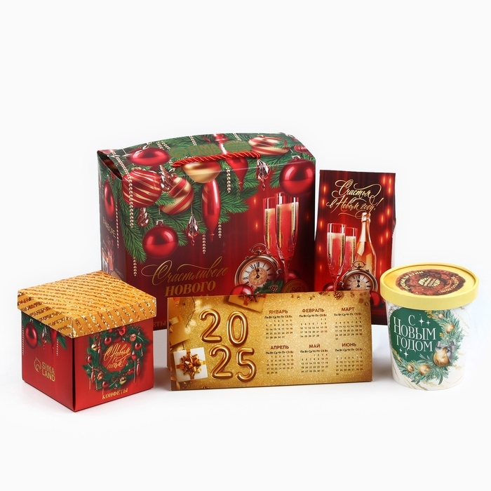 Подарочный набор новогодний «Счастливого года»: чай, конфеты, печенье брауни
