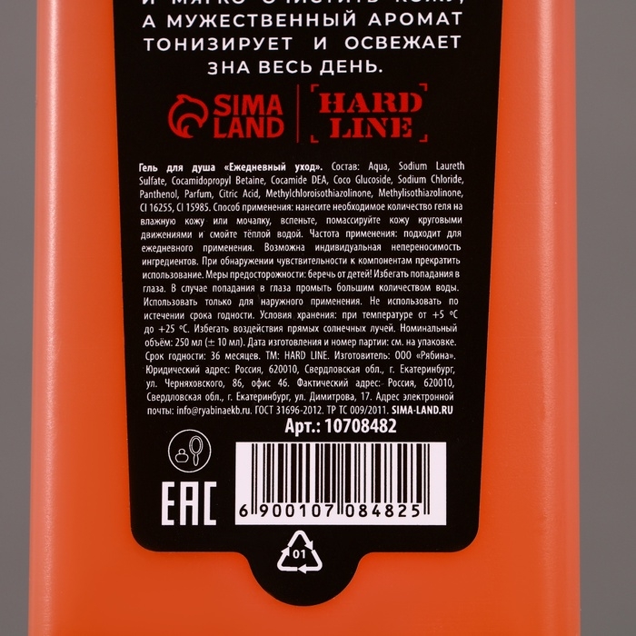 Гель для душа мужской «Энергия солнца», 250 мл, аромат цитруса и бергамота, HARD LINE