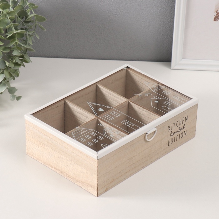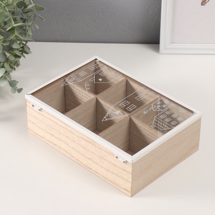 Шкатулка дерево 6 делений "Домики" 16х24х7,5 см