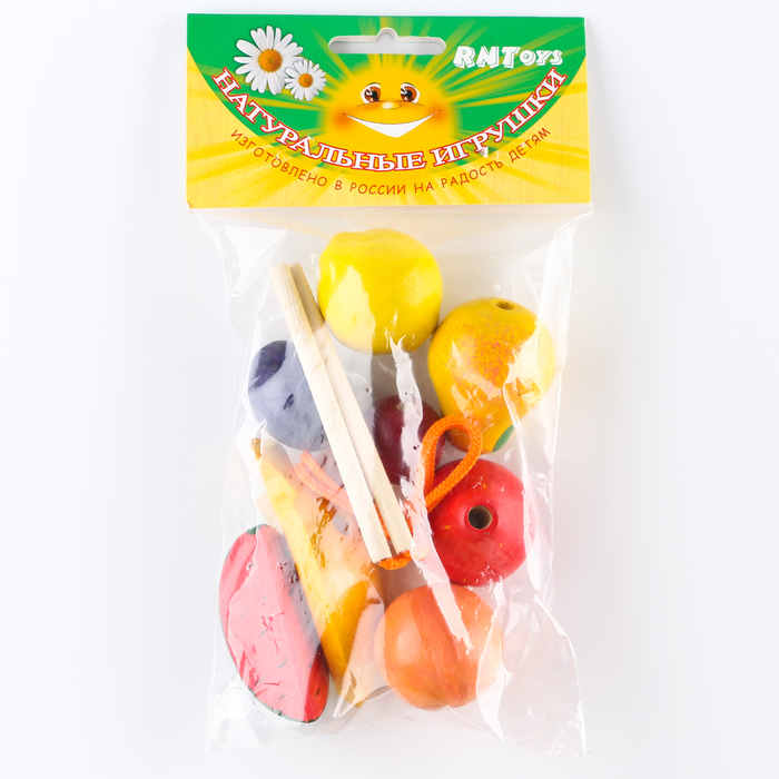 Яркие геометрические бусы привлекут внимание ребёнка и помогут ему развить полезные навыки, которые пригодятся в жизни. Задача малыша — нанизывать бусины на шнурок с помощью деревянной иголки.
