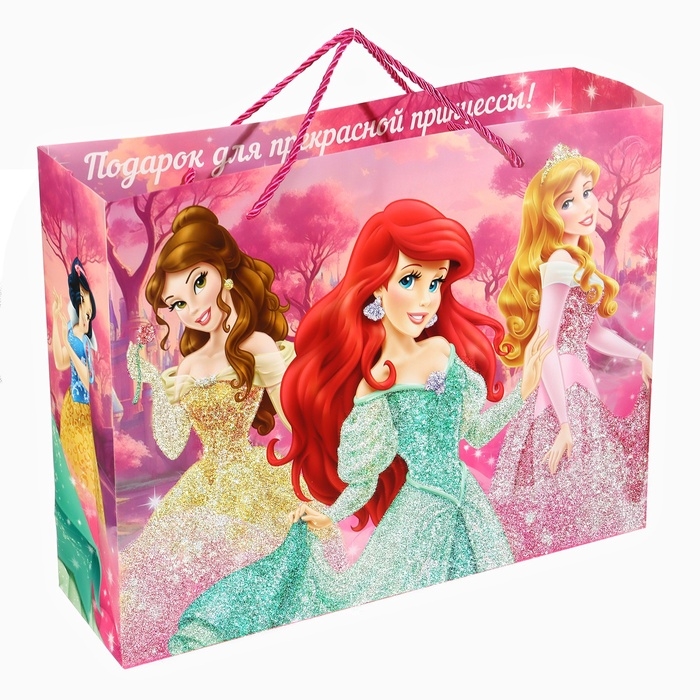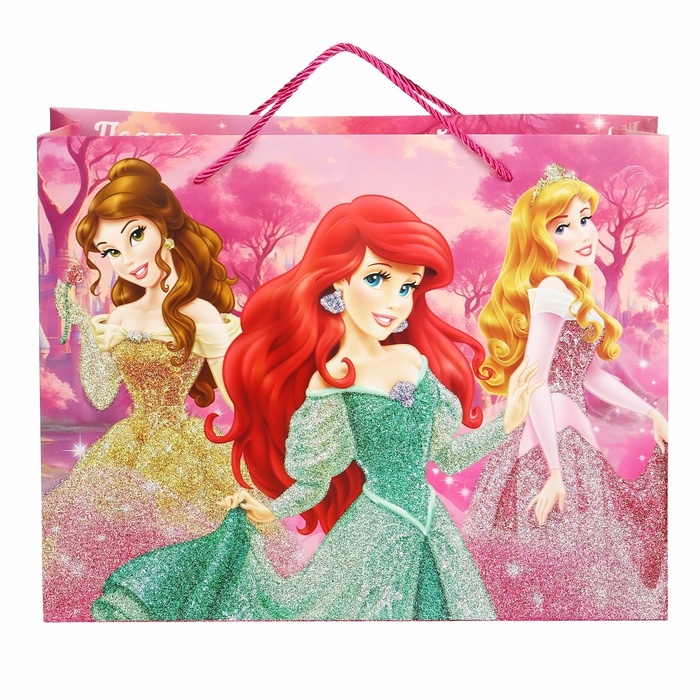 Пакет подарочный ламинированный с блёстками, Принцессы, 40 х 31 х 11. 5 см