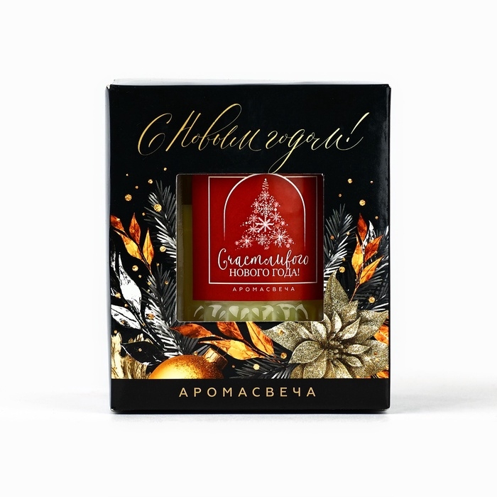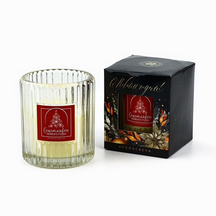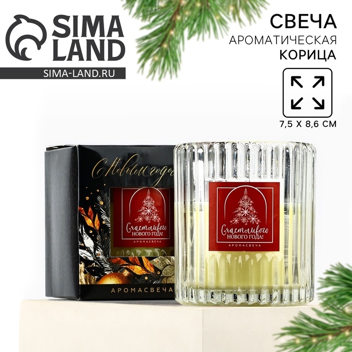 Свеча интерьерная "Счастливого нового года", аромат корица, 7,5 х 8,6 см